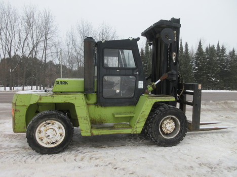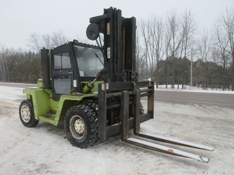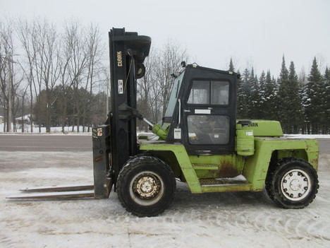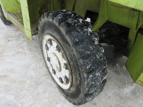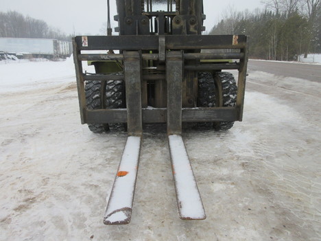 hyd steer, 6" forks, 90" carriage/ 214" lift height, 11' mast height, 8' 2" wide, 20' 8" long, enclosed cab w/ heat, hyd fork positioner
