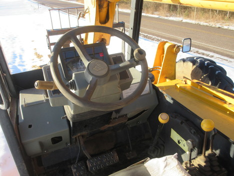 hyd 4 wheel steer, 36' lift height, 7' 6" wide, 18' long, 8' 4" high, 2 line aux hyds, quick tach, comes w/ forks & skidsteer style coupler, foam filled tires... read more