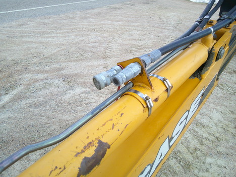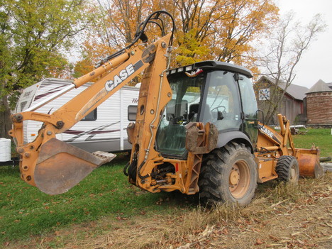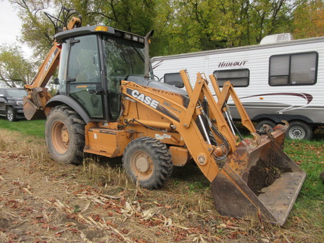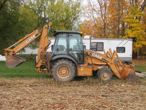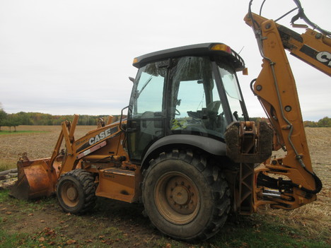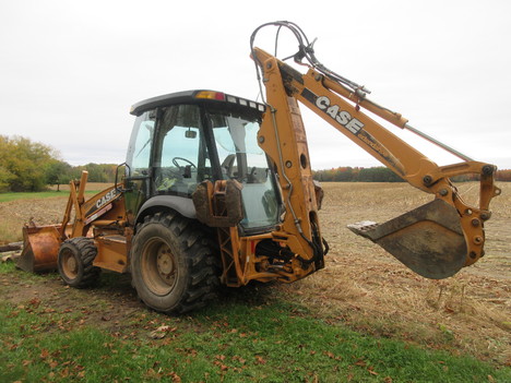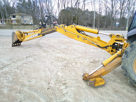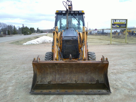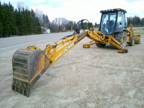 24" backhoe bucket, 7' loader bucket/ 1.25 yard cap, approx 18' dig depth, 25' long, 7' wide, 9' 3" high, enclosed cab, extendahoe, aux hyds, selectable aux GPM (8-30 GPM), ride control, comes w/ operators manual, strobe light