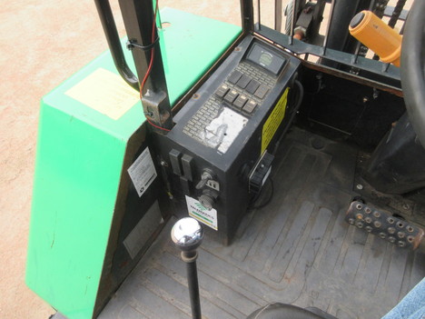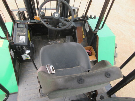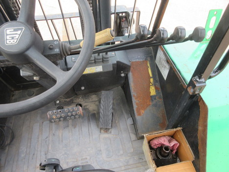 steel tubeless wheels, 28' lift height, 6' forks, 10' 10" mast height, 9' 7" high, 14' 6" long w/ out forks, 7' 8" wide, hyd side shift, 4th function, transmission problem