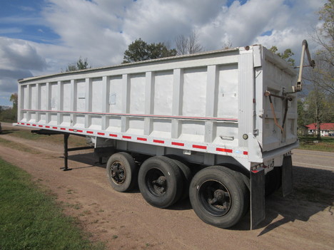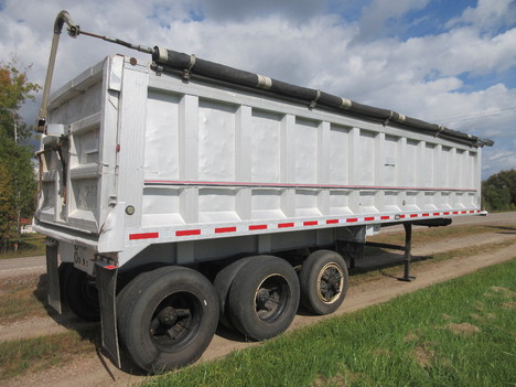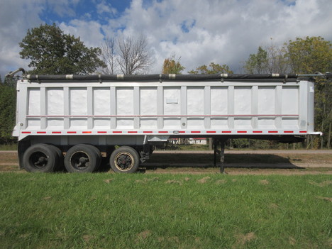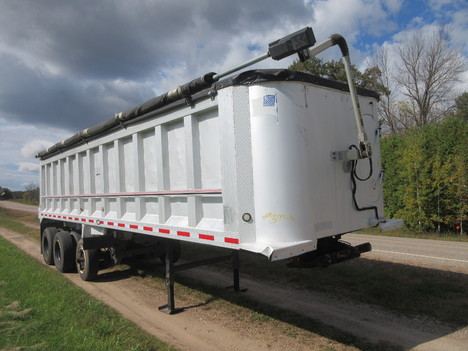 hinged 5th plate, 80,000# GVWR, 60" sides, 30' long, 102" wide, 16" king pin setting, electric roll tarp, flip tailgate w/ grain chute, air load gauge, front bulkhead access door