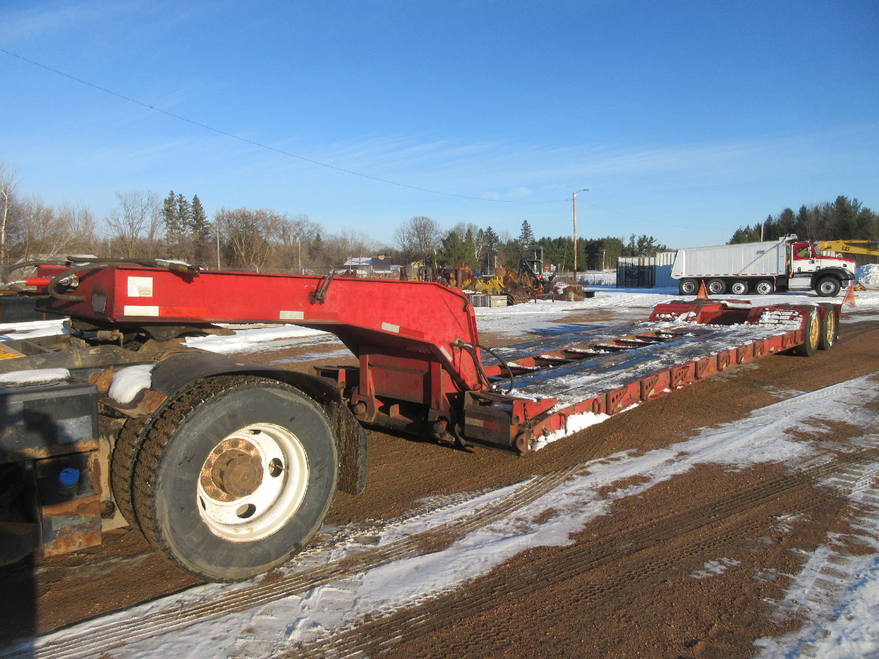 air brakes, 23' 6" well, 5th plate, 35 ton capacity, 44' 6" long, 8' 6" wide, 16" king pin, 2 line hyds, NGB neck, outriggers, hyd neck support, fold down approach ramps, 5 sets of D-rings