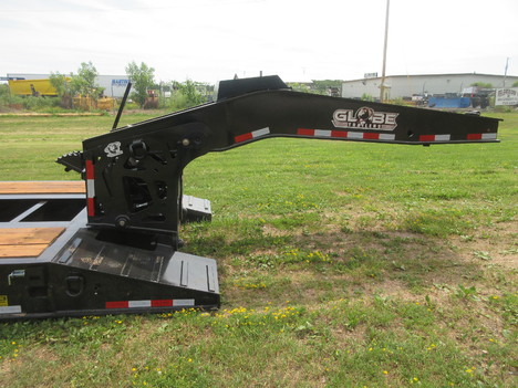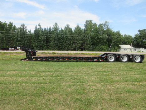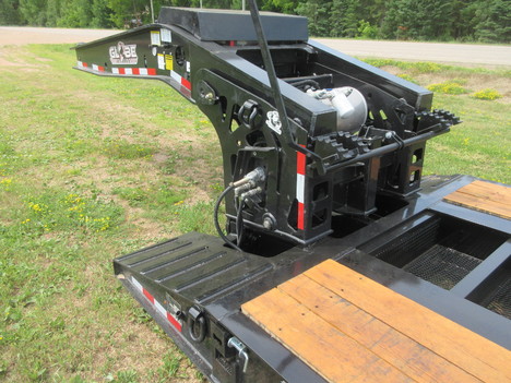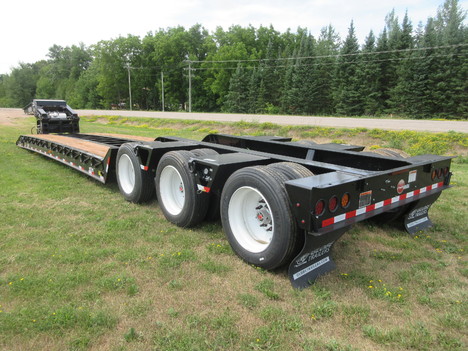 air brakes, 26' well, 16" king pin, 5th plate, approx 19,660#, Honda GX390 pony motor, NGB neck w/ multiple ride height settings, hyd gooseneck support, tapered deck approach, boom/bucket well, outriggers, strobe lights, 3rd axle air lift, powder coated, 13 sets of D-rings, subject to FET