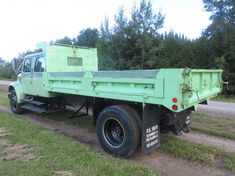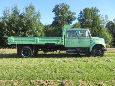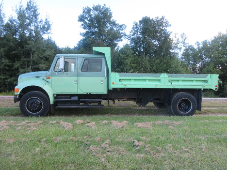 14' steel contractors box, crew cab/ 4 door, fold down sides, pintle hitch w/ electric brake controller, hyd liftgate, 2 way tailgate