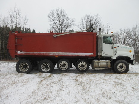 heavy single frame, provisions for pintle w/ air & electric, 232" bridge length, electric tarp, strobe lights, steerable pushers, box vibrator, new front springs